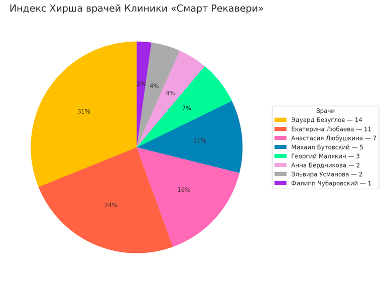 Индекс Хирша врачей клиники «Смарт Рекавери» (по данным сайта scopus.com)